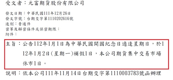 【期貨 假期通知】&【股市休市】(現貨市場)