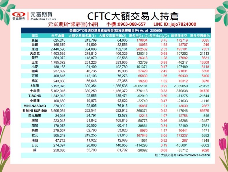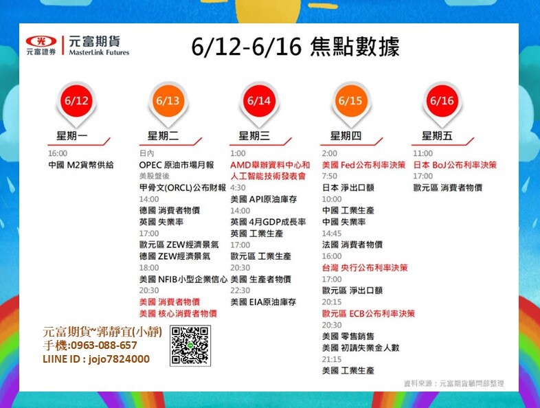 台新期貨~小靜【6月12日~6月16日元富期貨國際金融焦點數據&CFTC大額交易人持倉】@台新期貨開戶推薦郭靜宜(小靜)@LINE : jojo7824000@期貨全台開戶@期貨線上開戶