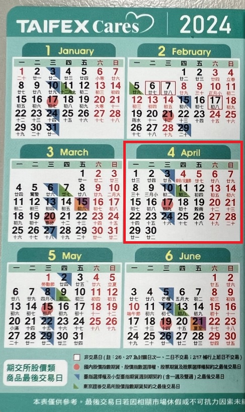 元富期貨【2024年4月份海期亞洲市場假期//4月台灣期貨市場結算日】#元富期貨推薦開戶營業員郭靜宜#海期手續費#大台手續費#小台手續費#選擇權手續費