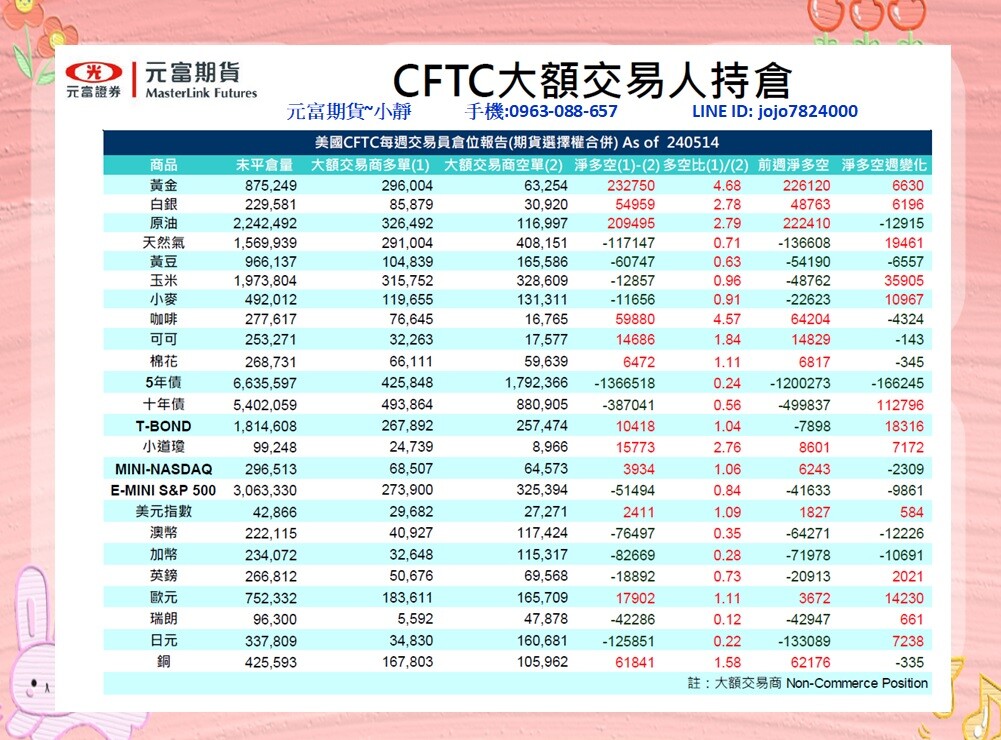 元富期貨-海期專業【5月20日~5月24日海期焦點數據&CFTC大額交易人持倉】#微小道#微小那#微小sp#微黃金#微型輕原油#微型銅#微日經
