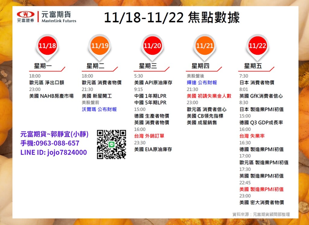 元富期貨-海期專業【11月18日~11月22日海期焦點數據&CFTC大額交易人持倉】#微台指#微小那#微小道#微黃金#微型輕原油#微型銅#微日經